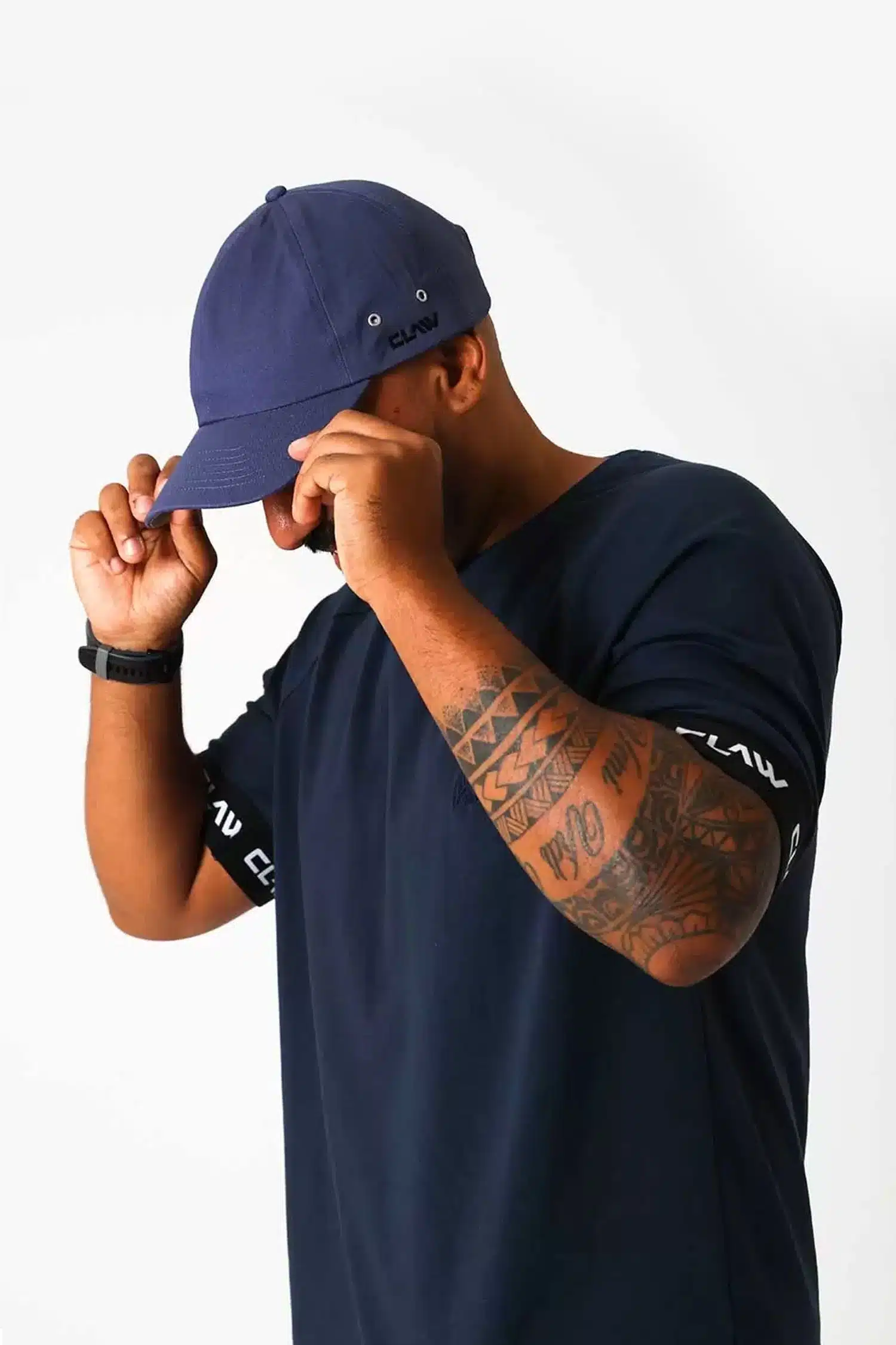 Boné casual com partes inferiores da pala em contraste. Logo da marca bordado na lateral esquerda a preto.